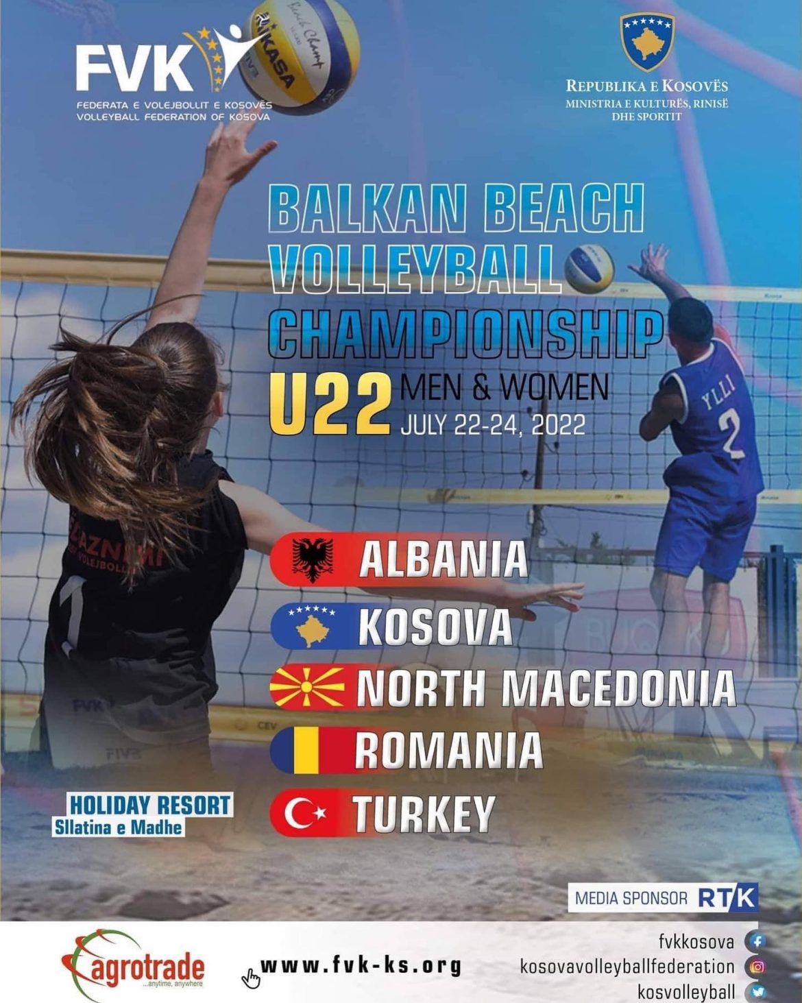 U22 Balkan Beach Championship 2022 for men and women will be played from 22nd until 24th July in “Holiday Resort” Sllatine e Madhe in Kosovo.