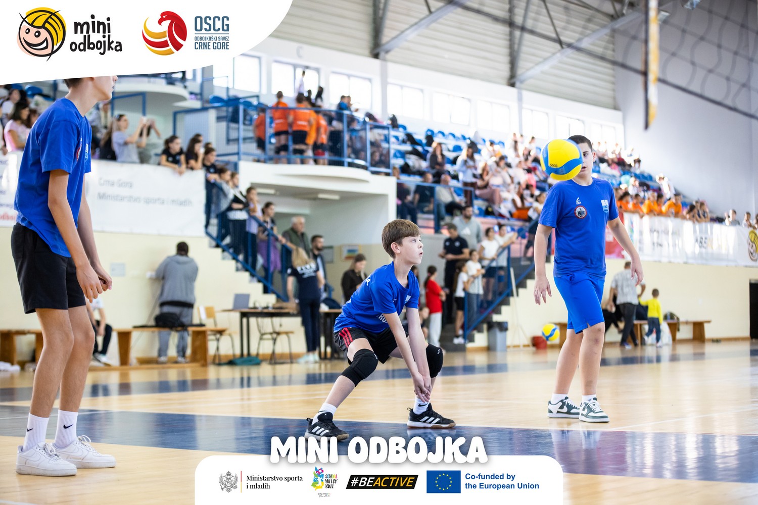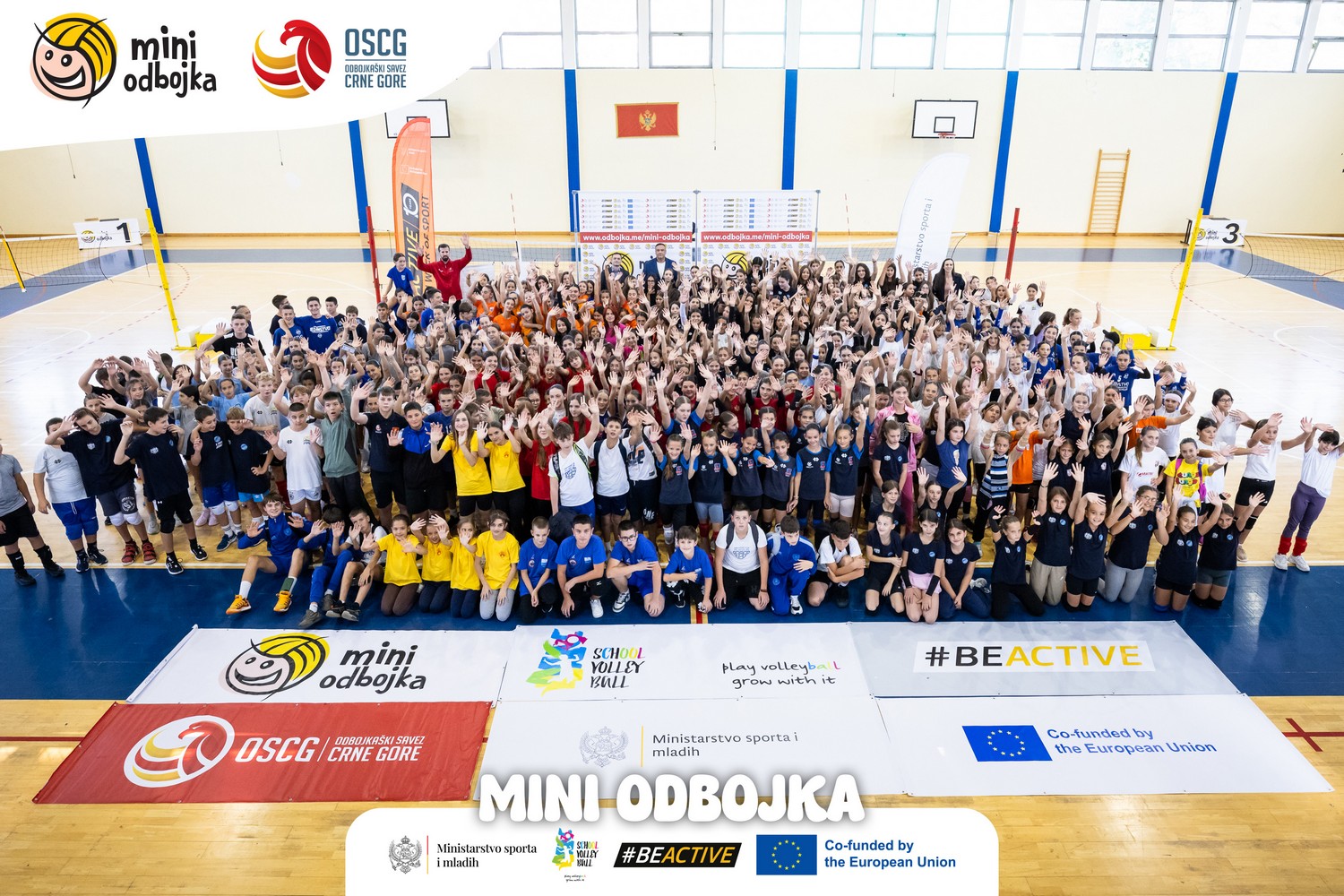 With an opening ceremony and the first day of competition, the ninth season of the Mini Volleyball league officially started at the sports hall of the Slobodan Škerović Gymnasium. The event is once again organised by the Volleyball Federation of Montenegro (OSCG), with support from the Ministry of Sports and Youth, the European Volleyball Confederation (CEV), and as part of the European Week of Sport.