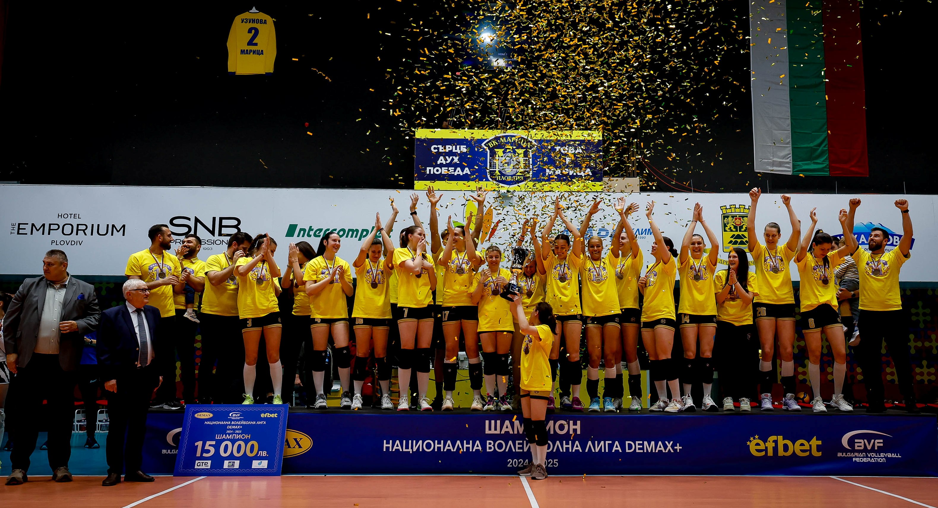 Maritza PLOVDIV broke their own record and collected their 11th back-to-back national volleyball crown in Bulgaria’s National Volleyball League (NVL). In a season also highlighted by the club’s first ever advancement beyond the pool stage of the CEV Champions League in the European Cups and their 10th Bulgaria Cup trophy, the Yellow-and-Blues from Europe’s oldest living city cruised through the entire NVL competition undefeated in a total of 26 matches played.